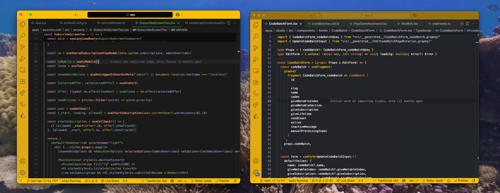 My tech choices were made a decade ago. This video of a conference talk I gave from 2018 is still the way I introduce people to the Puzzmo codebase and the mentality behind these tech choices. React, Relay, GraphQL, TypeScript and (now StyleX) are boring and very explicit technologies. There are compilation steps in all of these systems which means everything has to be available locally and correct to run, this makes it a bit of a curve to learn but often when you have got it right - you know you have got it right. For our admin tools, its even more boring/mature, I’m still using Bootstrap!