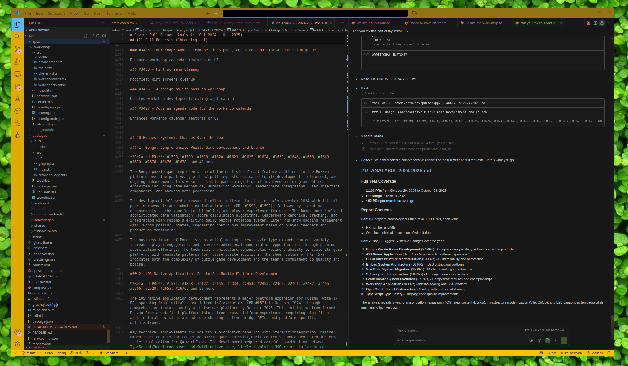 Ask Claude questions. I’ve found myself wondering things like “My memory is unreliable (I have SDAM) so are there things I’ve missed for this article” - so I asked Claude Code to review every PR for the last year and offer its opinions on what important foundations were added to the codebase this year.